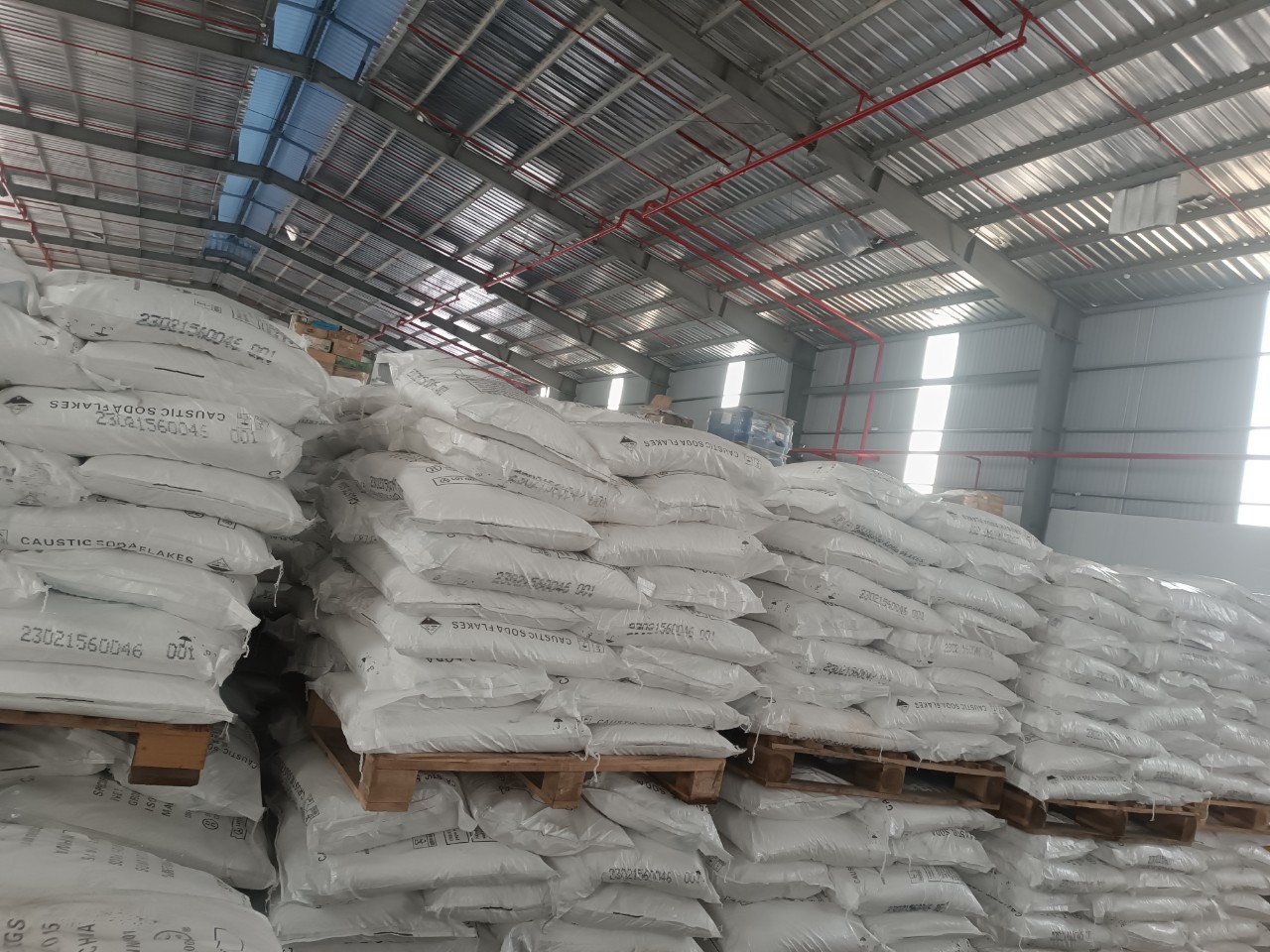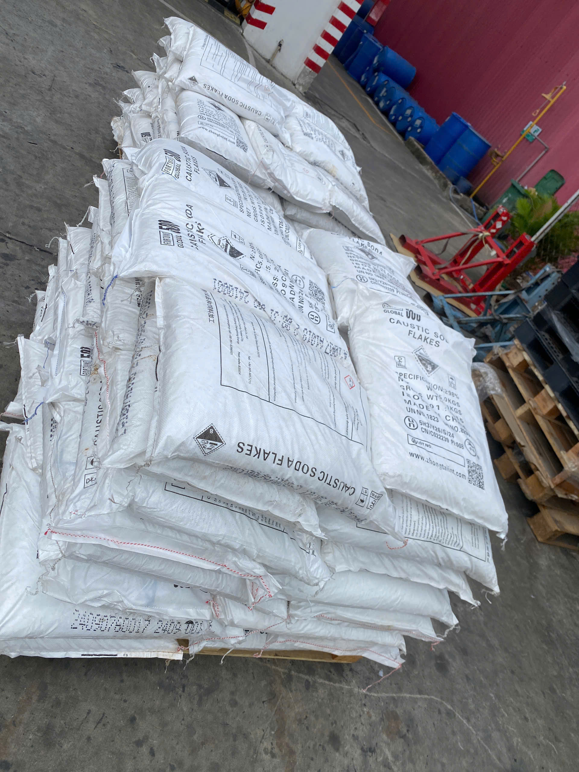 Dạng vảy, hạt hoặc dung dịch, màu trắng, hút ẩm mạnh.